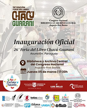 El 24 de febrero de 2026, se ha llevado a cabo el lanzamiento Oficial de la 26 Feria del Libro Chacú-Guaraní, en la Biblioteca y Archivo Central del Congreso Nacional a partir de la 11:00 horas. La muestra se desarrollará del 5 al 15 de marzo de 2026, de 09:00 a 21:00 horas en la Biblioteca del Congreso de la Nación. De la Feria participarán, editoriales, librerías, escritores gestores culturales, y lectores de Paraguay, Argentina, Brasil y Uruguay. La OPACI, en forma conjunta con el Congreso Nacional de nuestro país son los principales organizadores, para lo cual se han realizado diversas gestiones sobre las que se ha referido el Sr. Nelson Peralta, director ejecutivo de la organización municipal, quien resaltó la relevancia del evento considerando la importancia del libro y la lectura en el ámbito integral de la ciudadanía, teniendo en cuenta que dicha disciplina no sólo contribuye a la formación cultural de las personas sino también por su efecto multiplicador en el ámbito familiar y social donde como sociedad interactuamos. |